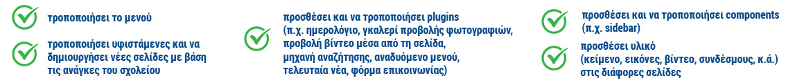 Με τη χρήση του Πρότυπου Ιστοτόπου (template), ο/η υπεύθυνος/η ιστοτόπου έχει τη δυνατότητα να: