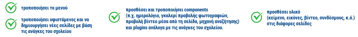Με τη χρήση του Πρότυπου Ιστοτόπου (template), ο/η υπεύθυνος/η ιστοτόπου έχει τη δυνατότητα να:
